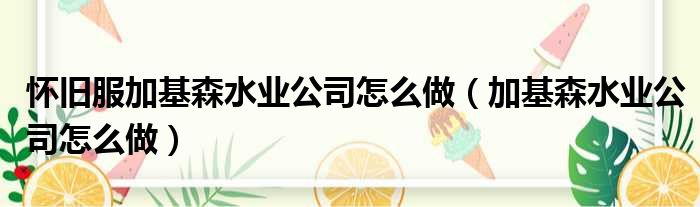 怀旧服加基森水业公司怎么做(加基森水业公司怎么做)