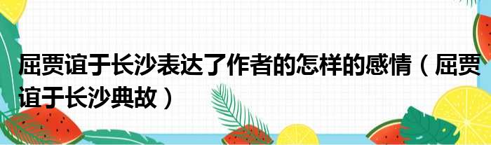 屈贾谊于长沙表达了作者的怎样的感情(屈贾谊于长沙典故)