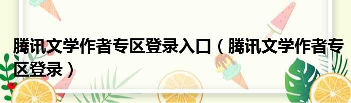 腾讯文学作者专区登录入口(腾讯文学作者专区登录)