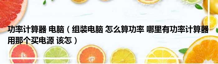 功率计算器 电脑(组装电脑 怎么算功率 哪里有功率计算器 用那个买电源 该怎)