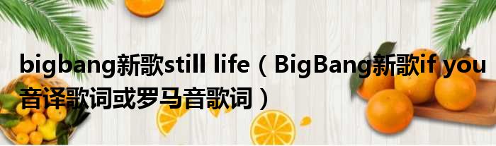bigbang新歌still life(BigBang新歌if you音译歌词或罗马音歌词)