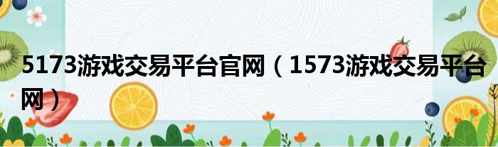 5173游戏交易平台官网(1573游戏交易平台网)