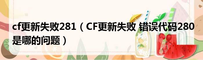 cf更新失败281(CF更新失败 错误代码280是哪的问题)