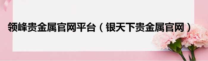 导读 大家好,今天小六子来为大家解答以下的问题,关于领峰贵金属官网平台,银天下贵金属官网这个很多人还不知道,现在让我们一起来看看吧!1、银