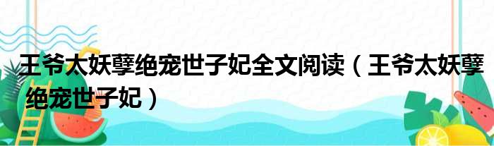 导读 大家好,今天小六子来为大家解答以下的问题,关于王爷太妖孽绝宠世子妃全文阅读,王爷太妖孽 绝宠世子妃这个很多人还不知道,现在让我们一