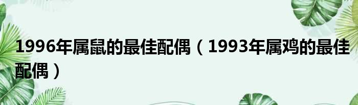 1996年属鼠的最佳配偶(1993年属鸡的最佳配偶)