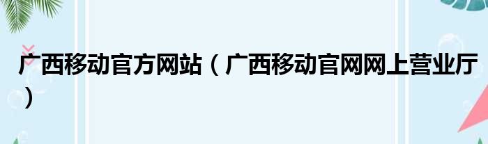 广西移动官方网站(广西移动官网网上营业厅)