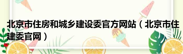 北京市住房和城乡建设委官方网站(北京市住建委官网)