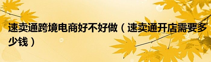 导读 大家好,今天小六子来为大家解答以下的问题,关于速卖通跨境电商好不好做,速卖通开店需要多少钱这个很多人还不知道,现在让我们一起来看看