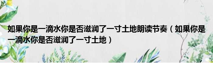 如果你是一滴水你是否滋润了一寸土地朗读节奏(如果你是一滴水你是否滋润了一寸土地)