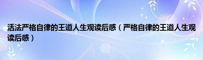 活法严格自律的王道人生观读后感(严格自律的王道人生观读后感)
