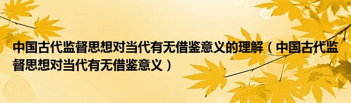 中国古代监督思想对当代有无借鉴意义的理解(中国古代监督思想对当代有无借鉴意义)