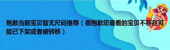 大家好,今天小六子来为大家解答以下的问题,关于抱歉当前宝贝暂无尺码推荐,很抱歉您查看的宝贝不存在可能已下架或者被转移这个很多人还不知道,现在让我们一起来看看吧!
