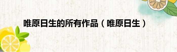 大家好,今天小六子来为大家解答以下的问题,关于唯原日生的所有作品,唯原日生这个很多人还不知道,现在让我们一起来看看吧!