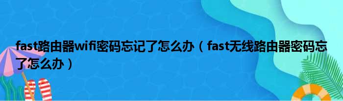 fast路由器wifi密码忘记了怎么办(fast无线路由器密码忘了怎么办)