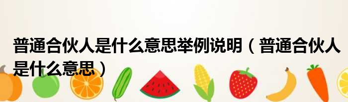 普通合伙人是什么意思举例说明(普通合伙人是什么意思)