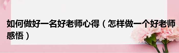 如何做好一名好老师心得(怎样做一个好老师感悟)