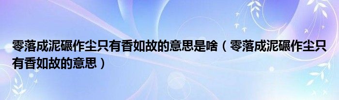 大家好,今天小六子来为大家解答以下的问题,关于零落成泥碾作尘只有香如故的意思是啥,零落成泥碾作尘只有香如故的意思这个很多人还不知道,现在让我们一起来看看吧!