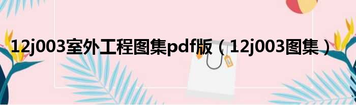 导读 大家好,今天小六子来为大家解答以下的问题,关于12j003室外工程图集pdf版,12j003图集这个很多人还不知道,现在让我们一起来看看吧!1、12J