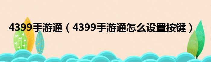 4399手游通(4399手游通怎么设置按键)