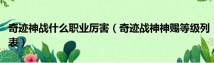 奇迹神战什么职业厉害(奇迹战神神赐等级列表)