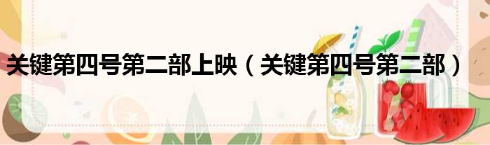 导读 大家好,今天小六子来为大家解答以下的问题,关于关键第四号第二部上映,关键第四号第二部这个很多人还不知道,现在让我们一起来看看吧!1、