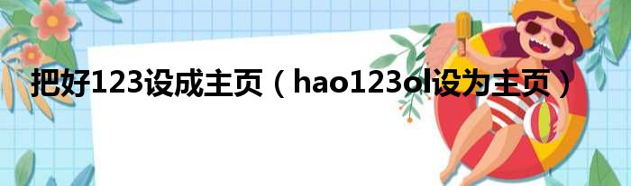 大家好,今天小六子来为大家解答以下的问题,关于把好123设成主页,hao123ol设为主页这个很多人还不知道,现在让我们一起来看看吧!