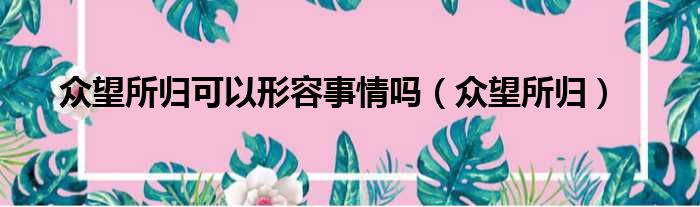 导读 大家好,今天小六子来为大家解答以下的问题,关于众望所归可以形容事情吗,众望所归这个很多人还不知道,现在让我们一起来看看吧!1、【解释