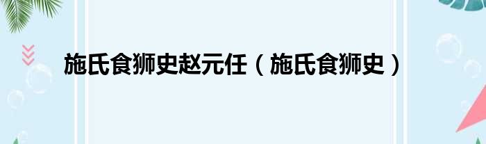大家好,今天小六子来为大家解答以下的问题,关于施氏食狮史赵元任,施氏食狮史这个很多人还不知道,现在让我们一起来看看吧!