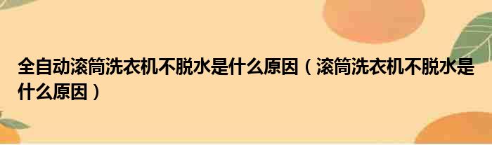全自动滚筒洗衣机不脱水是什么原因(滚筒洗衣机不脱水是什么原因)