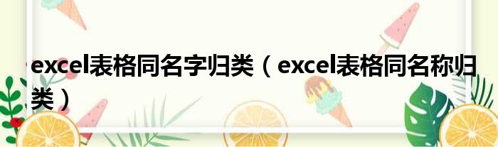 导读 大家好,今天小六子来为大家解答以下的问题,关于excel表格同名字归类,excel表格同名称归类这个很多人还不知道,现在让我们一起来看看吧!1