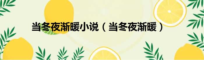 当冬夜渐暖小说(当冬夜渐暖)