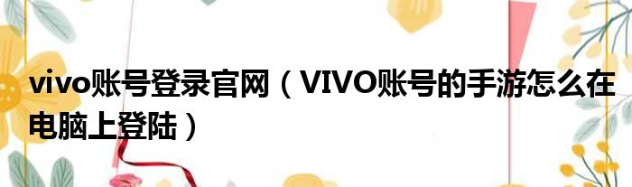 vivo账号登录官网(VIVO账号的手游怎么在电脑上登陆)
