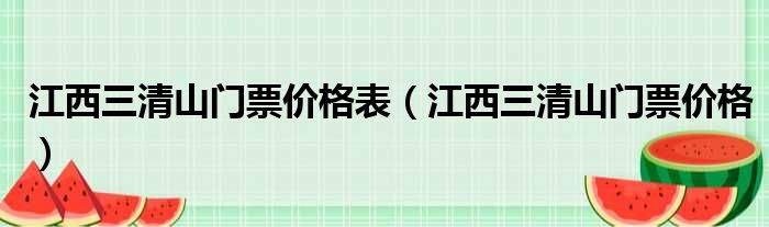 江西三清山门票价格表(江西三清山门票价格)