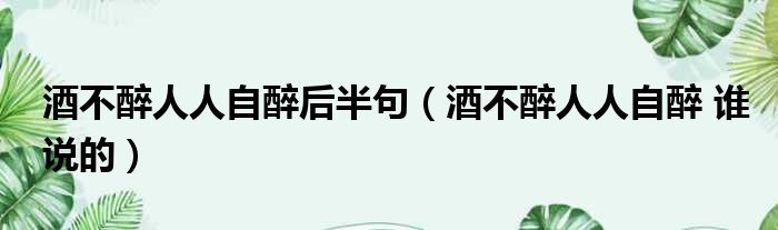 导读 大家好,今天小六子来为大家解答以下的问题,关于酒不醉人人自醉后半句,酒不醉人人自醉 谁说的这个很多人还不知道,现在让我们一起来看看