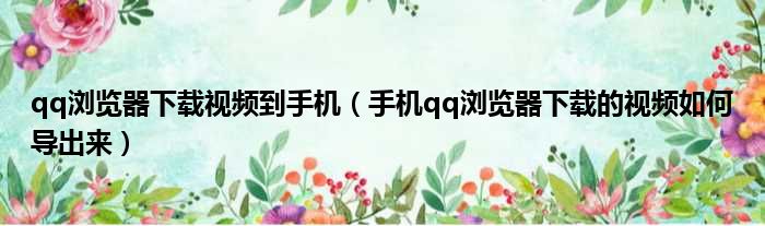 qq浏览器下载视频到手机(手机qq浏览器下载的视频如何导出来)