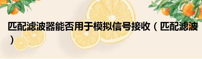 导读 大家好,今天小六子来为大家解答以下的问题,关于匹配滤波器能否用于模拟信号接收,匹配滤波这个很多人还不知道,现在让我们一起来看看吧!1