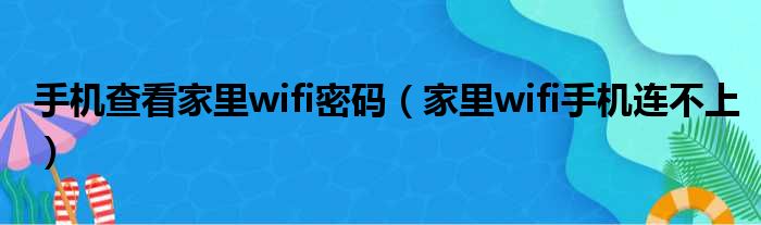 手机查看家里wifi密码(家里wifi手机连不上)
