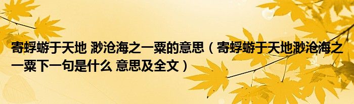 寄蜉蝣于天地 渺沧海之一粟的意思(寄蜉蝣于天地渺沧海之一粟下一句是什么 意思及全文)