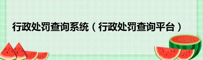导读 大家好,今天小六子来为大家解答以下的问题,关于行政处罚查询系统,行政处罚查询平台这个很多人还不知道,现在让我们一起来看看吧!1、查询