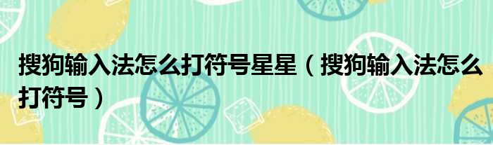 搜狗输入法怎么打符号星星(搜狗输入法怎么打符号)