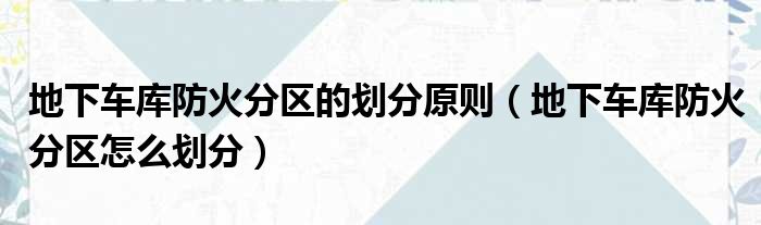 地下车库防火分区的划分原则(地下车库防火分区怎么划分)