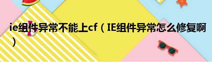 导读 大家好,今天小六子来为大家解答以下的问题,关于ie组件异常不能上cf,IE组件异常怎么修复啊这个很多人还不知道,现在让我们一起来看看吧!1