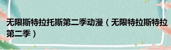 导读 大家好,今天小六子来为大家解答以下的问题,关于无限斯特拉托斯第二季动漫,无限特拉斯特拉第二季这个很多人还不知道,现在让我们一起来看