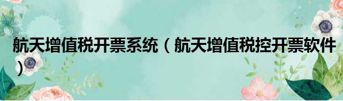 导读 大家好,今天小六子来为大家解答以下的问题,关于航天增值税开票系统,航天增值税控开票软件这个很多人还不知道,现在让我们一起来看看吧!1