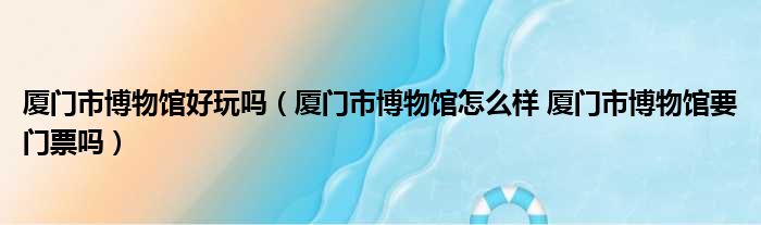 导读 大家好,今天小六子来为大家解答以下的问题,关于厦门市博物馆好玩吗,厦门市博物馆怎么样 厦门市博物馆要门票吗这个很多人还不知道,现在