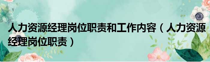 人力资源经理岗位职责和工作内容(人力资源经理岗位职责)