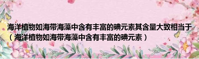 海洋植物如海带海藻中含有丰富的碘元素其含量大致相当于(海洋植物如海带海藻中含有丰富的碘元素)