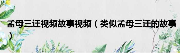 孟母三迁视频故事视频(类似孟母三迁的故事)