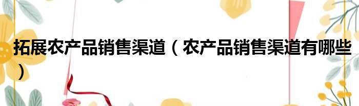 拓展农产品销售渠道(农产品销售渠道有哪些)